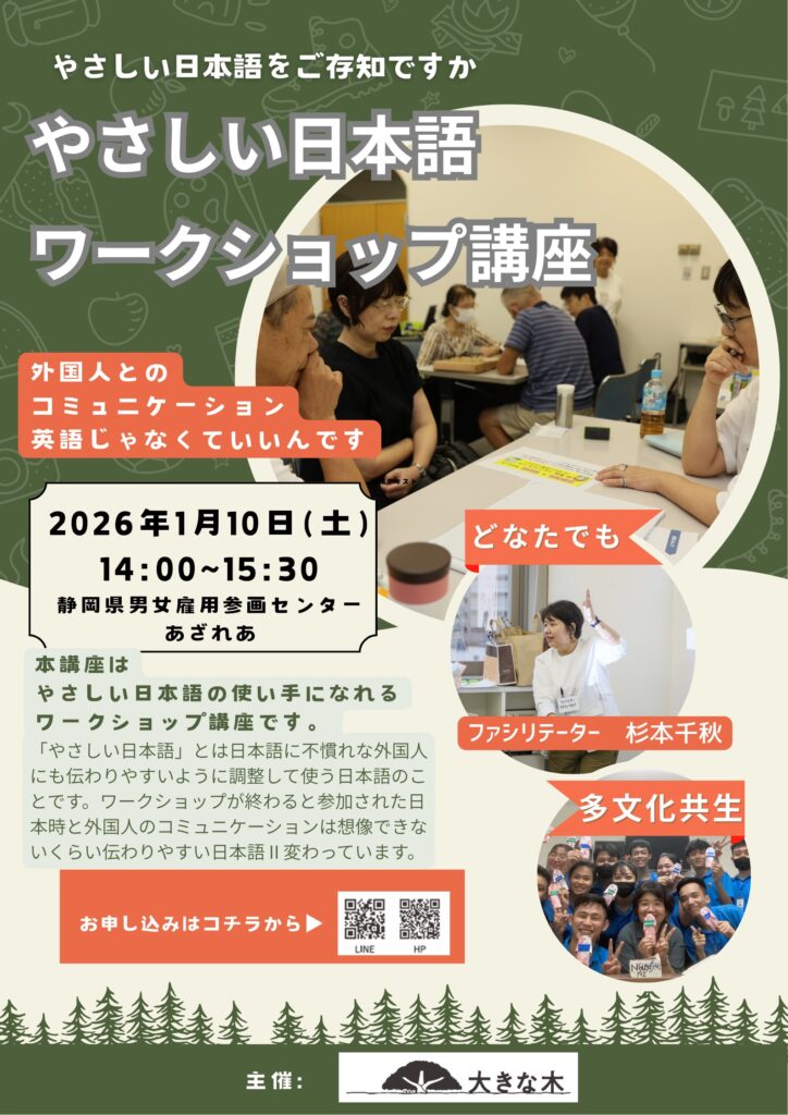 外国人の方とのコミュニケーション、英語じゃなくていいんです。「やさしい日本語」の使い手になれるワークショップ講座。講師からの講義ではなく、みんなでわいわい楽しく学び合います。あなたの参加をお待ちしています。
